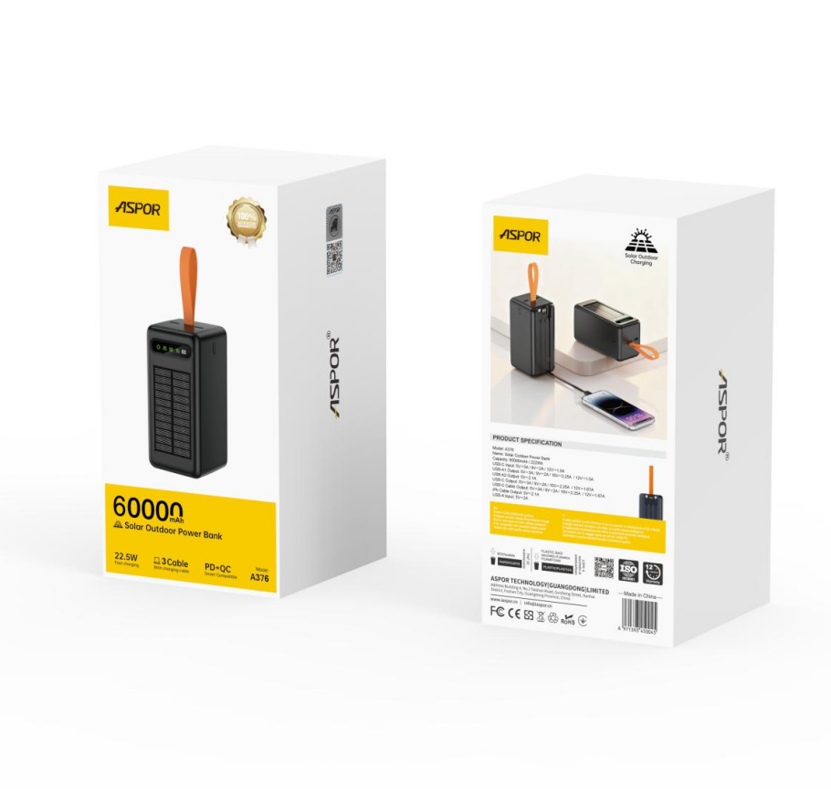 ظرفیت پاوربانک خورشیدی فضای باز: 60000 میلیآمپر ساعت